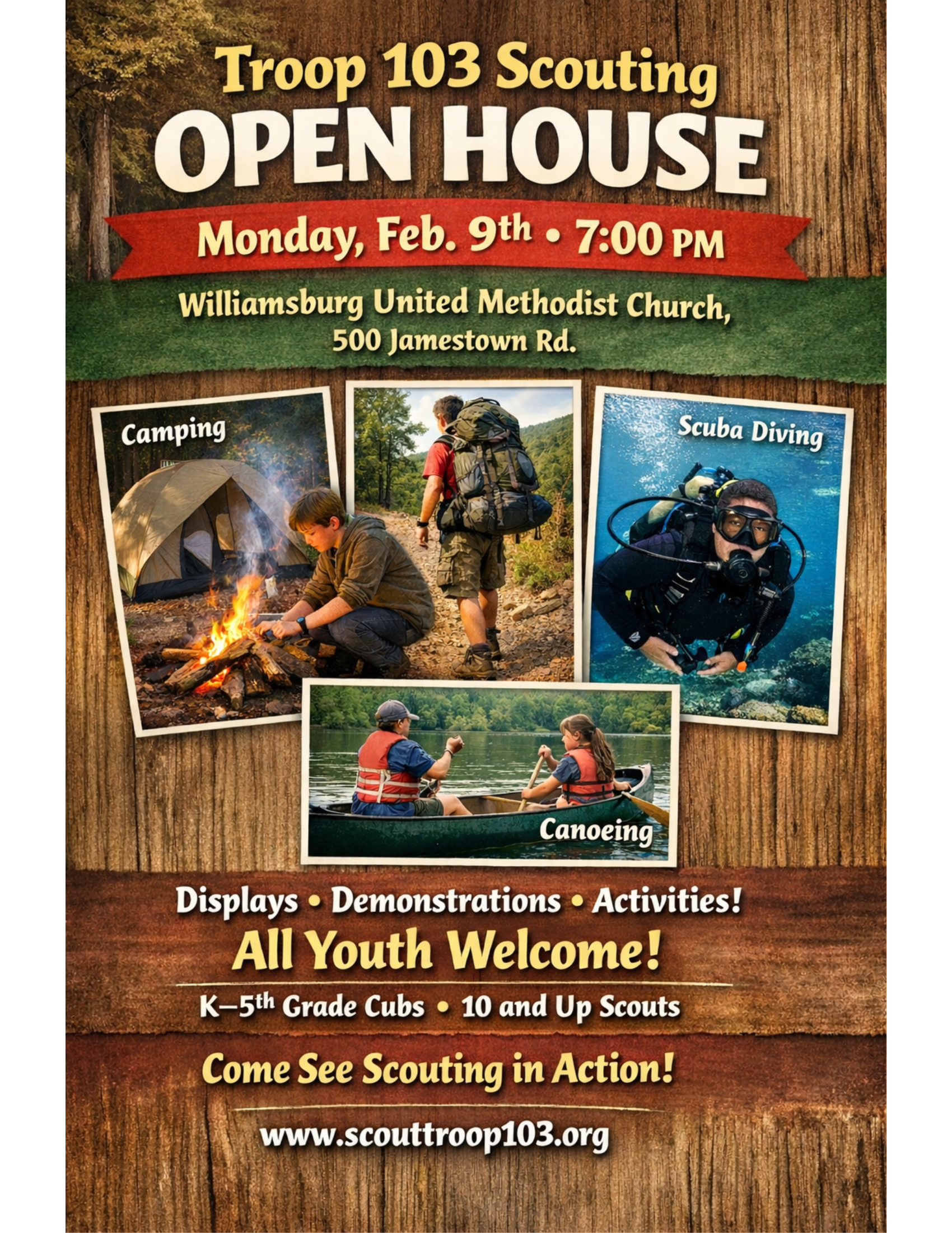 Troop 103 Scouting Open House moved to 9 February 2026 Don ReevesFebruary 3, 2026Meeting News Special Event