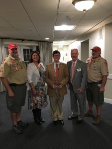 Troop 103 Eagle Scout Franklin West is recognized by the Historic Virginia Land Conservancy Board (HVLC) Thursday night for his Eagle project work at the Church on The Main historic site. Franklin’s project to rebuild and repair the perimeter and decorative, period correct, fencing around the site will help ensure the site thrives for years to come for the enjoyment of the community.